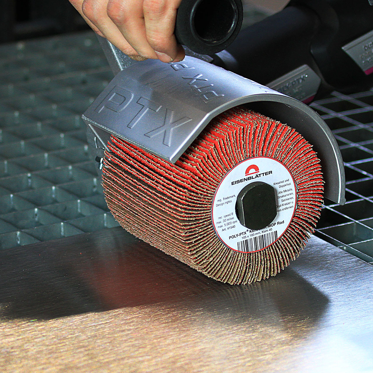 Keramik-Schleifgewebe für kräftige, glänzende Längsstrukturen auf Sichtflächen.