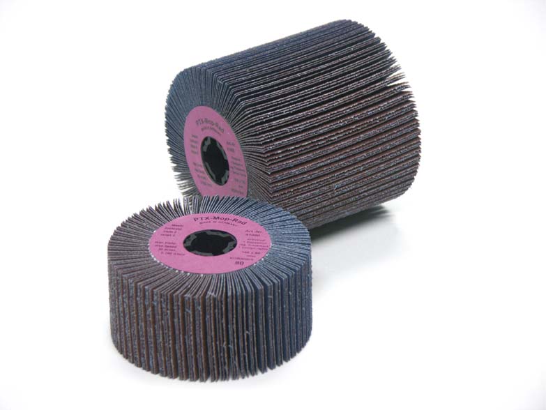 Besatz aus kunstharzgebundenem Spezial-Schleifgewebe, radial in Kunststoffkern eingegossen.