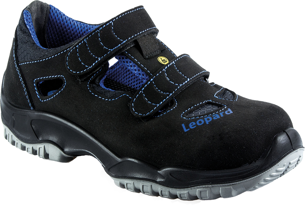 EN ISO 20345 S1 geprüft, Klettverschluss, Alukappe, Gel-Dämpfung, TPU/PU-Sohle, Weite 12, atmungsaktives Textilinnenfutter.