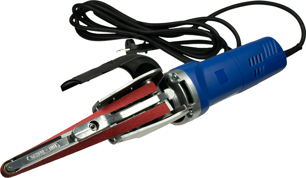 Handbandschleifer für Entgraten, Polieren, Satinieren – 600 W, 28 m/s, für 610 x 3–13 mm Schleifband, 7–25.000 U/min.